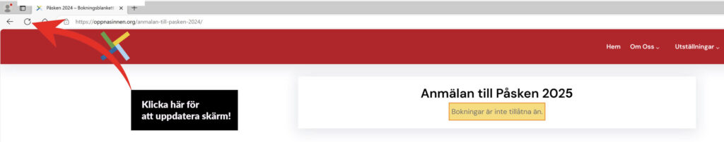 bokningsblanketten före kl. 09.00