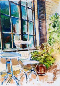 I mitt senaste måleri bjuder jag in till bilder nära mig med blåregnet och de gamla trädgårdsstolarna, det öppna landskapet i Maglarp, det överväxta huset som jag hittade i Hammarlöv, människor i olika miljöer m. m.
